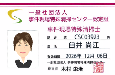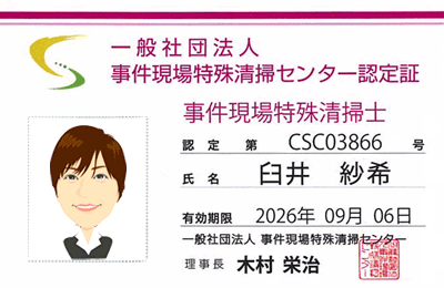 事件現場特殊清掃士の資格を取得したスタッフが、専門の知識と機材を使い、責任をもって現場の現状回復を行います。ご依頼は、秘密厳守で承ります。